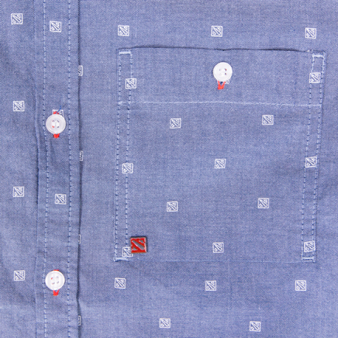 The International 2017 Dota 2 Chambray Button Up with double chest pockets and a enamel pin logo on the left chest.